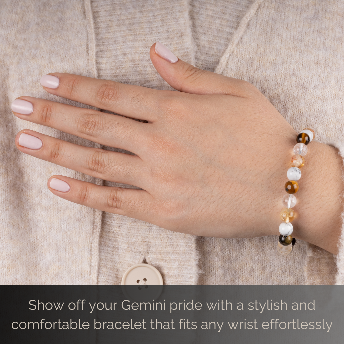 EMPOWERING CRYSTAL FUSION: Each bracelet is meticulously crafted with a powerful combination of citrine, white howlite, tiger eye, and clear quartz crystals, chosen specifically to amplify the bold energy of Gemini.