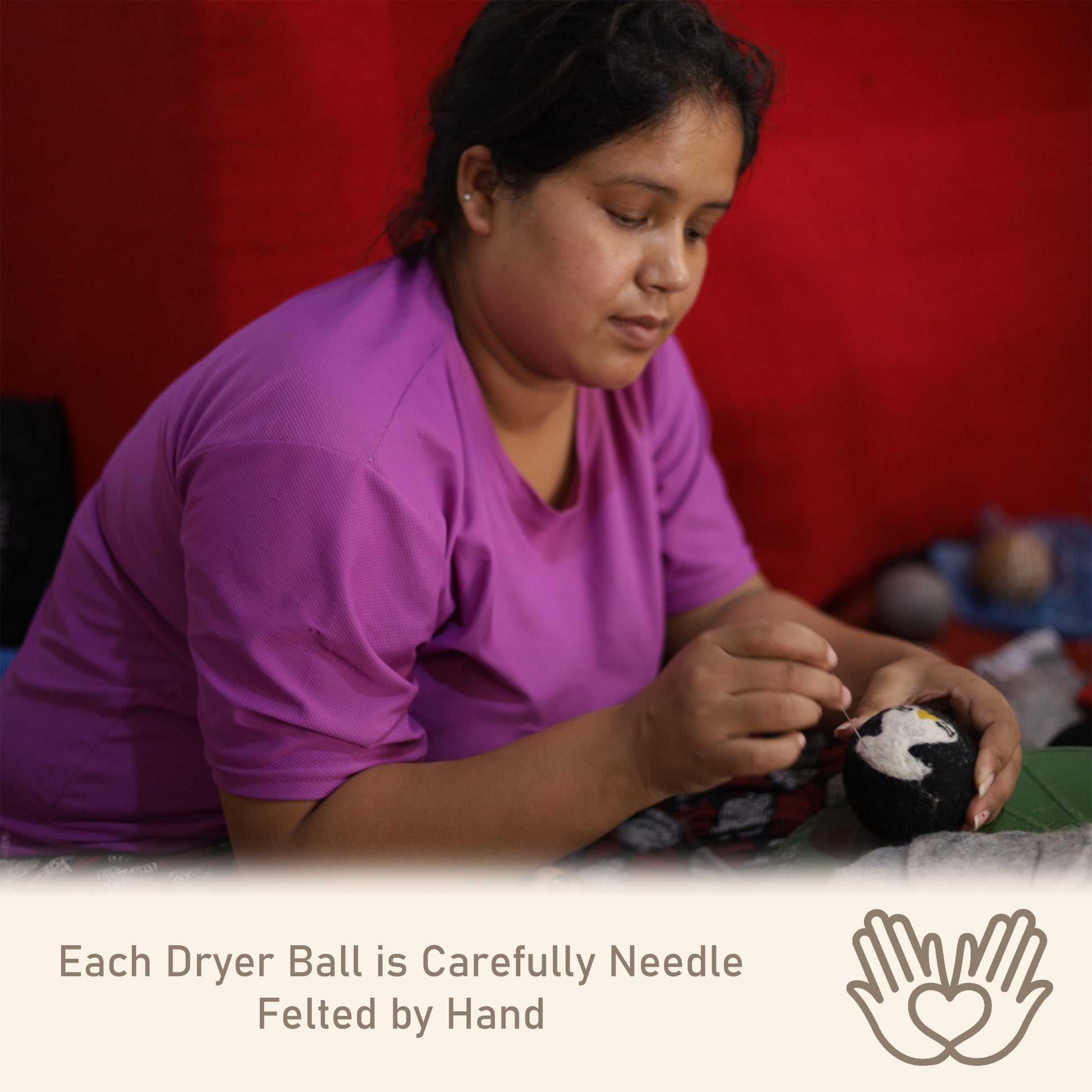 HANDMADE IN NEPAL: Not made in China like most other brands, but by hand in Nepal! Our dryer balls are made by Nepalese women for a fair wage under ethical working conditions, including access to healthcare, education, and a desire to empower those who are less fortunate.