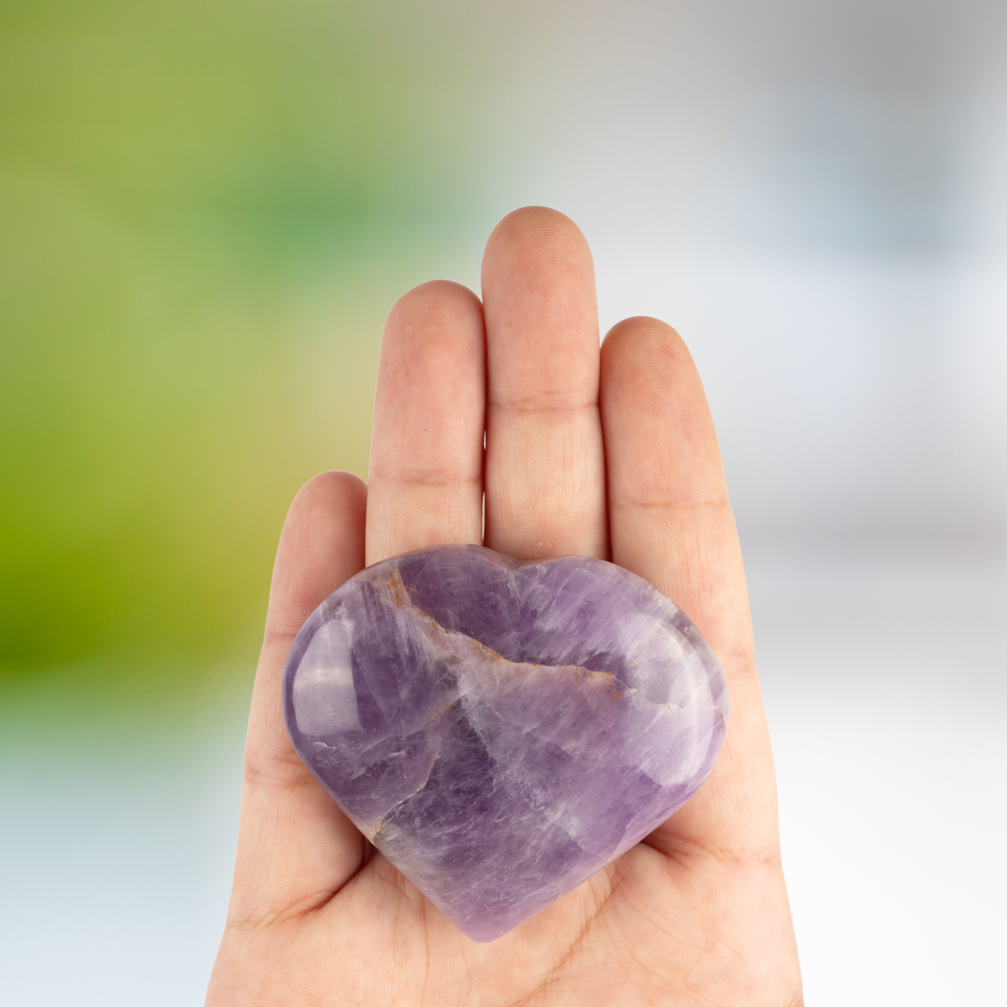 Amethyst Heart Palm Stone, Polished Crystal Stone for Chakra Balancing, Meditation, Spiritual and Crystal Gift